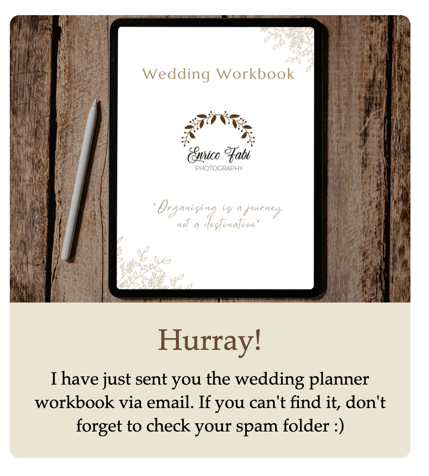 If only there was a tool that allowed you to always be on top of things and that did not cost an arm and a leg…well my friend, I got you! I have created a free wedding planner workbook so you will always be on top of everything. No more guessing or freaking out, everything you need is here in a single handy guide.